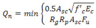 The individual strength of a stud is based on the minimum of two equations (from ANSI/AISC 360-10 I3.2d):