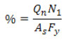 For full-composite strength, the combined strength of the studs must at least equal to the compressive stress in the concrete (or the net stress in the steel, which is the same quantity). Once the strength of each stud Q n is known, the number of studs can be determined. (The actual number of studs required on the beam is twice the number calculated to develop the shear strength - an equal number is needed on either side of the center of the beam).
