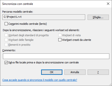 Nel caso di progetti condivisi basati su file e su server, i flussi di lavoro sono quasi identici. Le procedure per attivare i workset, sincronizzarsi con il modello centrale, caricare le modifiche più recenti sul modello centrale e rilasciare la proprietà dei workset sono identiche.