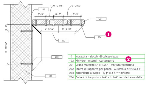 sulla tavola o accanto al disegno, indicando a cosa si riferisce ogni numero. Questo faceva sì che tutto il testo necessario per annotare si trovasse in un'unica posizione, pertanto era più semplice scrivere a mano lettere e/o apportare modifiche quando necessario.
