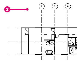 Revit, è possibile che si verifichino situazioni in cui una linea di griglia non è visibile in una vista di pianta, di sezione o di prospetto. In genere, ciò avviene perché le estensioni 3D della griglia non intersecano il piano di proiezione della vista dove la griglia non è visibile. Ad esempio, nelle due piante del pavimento mostrate qui sotto, la linea di griglia "1" è visibile nella pianta del primo piano