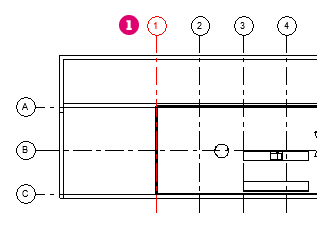 In base a quanto mostrato nella vista di prospetto, la linea di griglia "1" dovrebbe essere visibile in entrambe le viste di pianta.