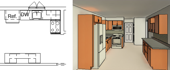 Utilizzare un parametro globale per modificare i materiali applicati alle famiglie in un progetto. In questo esempio è utilizzato un progetto di cucina e si desidera esplorare diversi aspetti dei materiali. Tutte le famiglie di arredi fissi dispongono di parametri del tipo per controllare l'aspetto. Il layout di esempio presenta un totale di 16 famiglie/tipi diversi. Ogni famiglia dispone di un parametro di materiale per gli arredi fissi principali e di un altro parametro per il materiale della porta. Se si apporta una modifica al materiale, è necessario modificare 32 valori di parametri in tutte le famiglie per poter apportare la modifica. Utilizzando un parametro globale, è possibile impostare il materiale per tutti gli arredi fissi della cucina in un'unica posizione. Naturalmente è possibile apportare una modifica all'aspetto dell'elemento materiale stesso anziché modificare i 32 parametri del materiale nelle famiglie oppure assegnare un materiale allo stile dell'oggetto di Arredi fissi per raggiungere l'obiettivo in modo simile. In questo esempio, si supponga che nessuna di queste opzioni sia preferibile e che si possa controllare l'aspetto del materiale con un parametro globale.