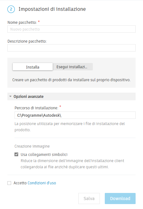 Il processo è identico a quello della creazione di un'installazione client. Per informazioni dettagliate sulla configurazione dell'installazione personalizzata, fare riferimento a Installazioni client di Revit.