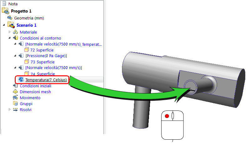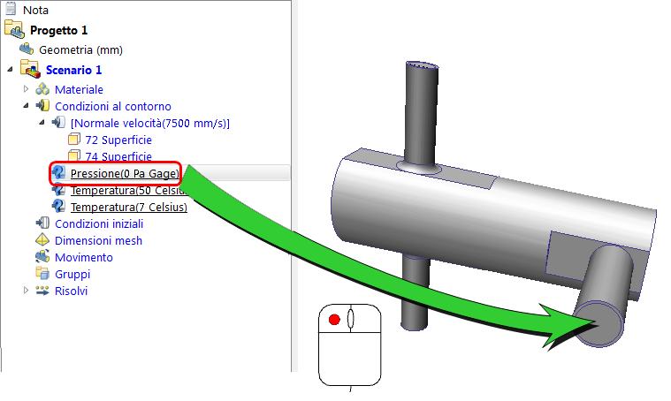 Nota Il modo più semplice per applicare condizioni al contorno da un modello consiste nel trascinarle direttamente sul modello.