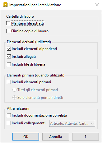 Quando si elimina la finestra di dialogo Archivia, è possibile specificare il modo in cui i file correlati vengono interessati dall'operazione corrispondente del Vault.