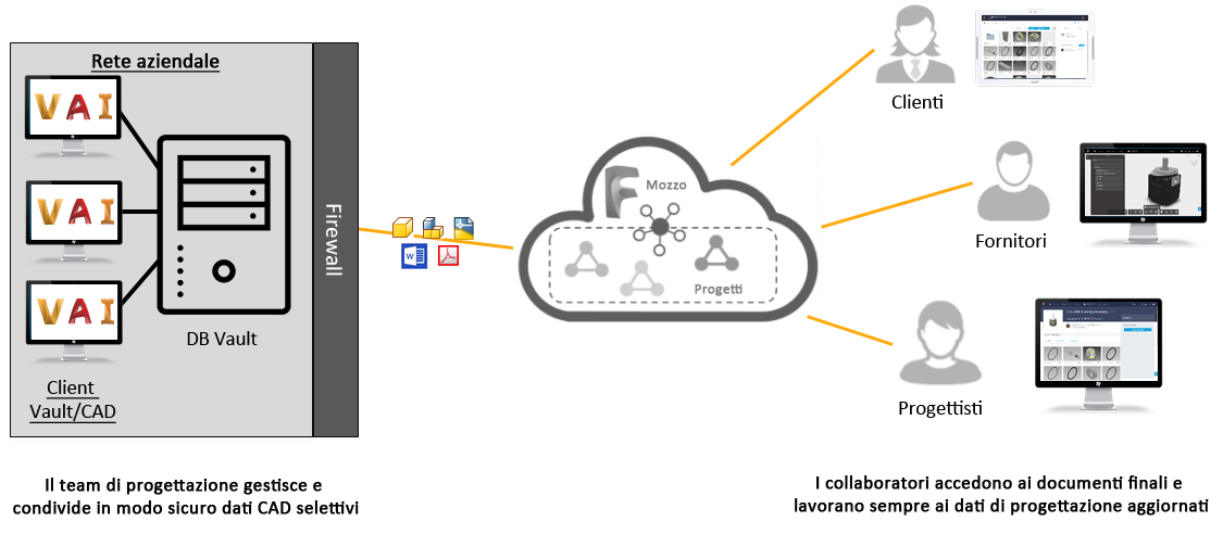 Le aziende devono poter collaborare ai documenti CAD con i consulenti esterni, i clienti e i fornitori. Spesso i documenti vengono condivisi e scambiati attraverso un firewall aziendale. È fondamentale che i file corretti siano resi disponibili al momento giusto e che possano essere condivisi con facilità, indipendentemente dalla loro dimensione o dal numero di documenti.