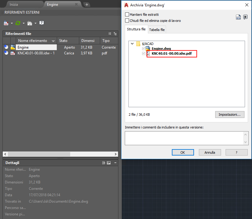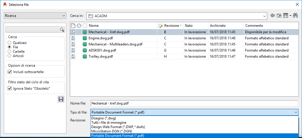 Con AutoCAD è possibile allegare file PDF ai disegni, sotto forma di sottoposto. Fino ad oggi, Vault non supportava gli allegati PDF durante l'archiviazione nel Vault.