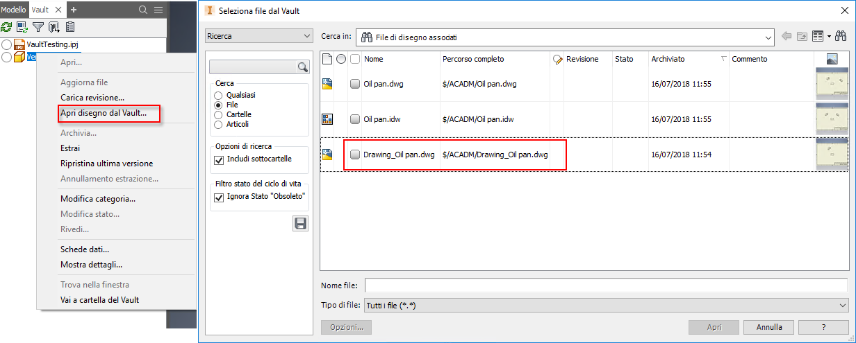 Vault ora supporta la gestione dei disegni di AutoCAD con PDF in allegato.