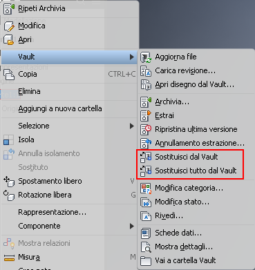 Utilizzando i nuovi comandi "Sostituisci dal Vault" e "Sostituisci tutto dal Vault" è possibile passare direttamente al Vault, cercare i componenti richiesti ed eseguire il comando Sostituisci.