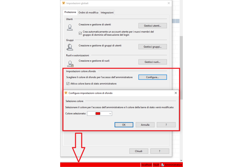 È possibile specificare un colore di sfondo speciale nel client del Vault quando ci si connette come amministratore.