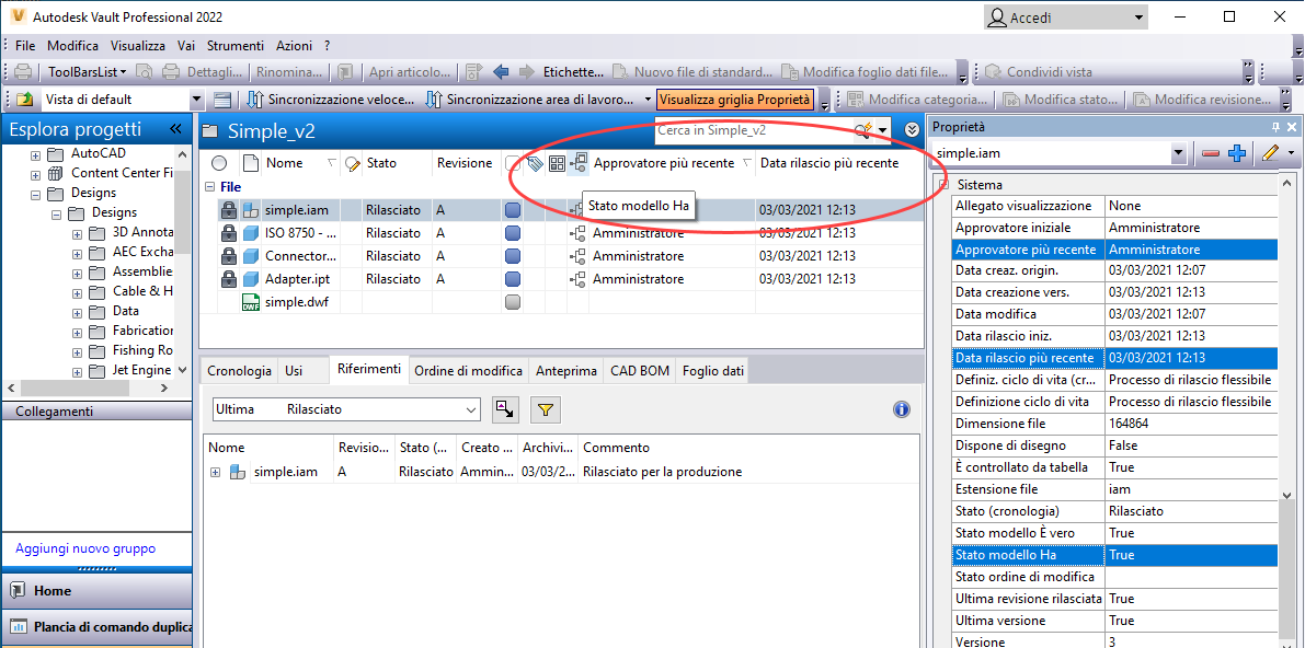 In Vault 2022 sono state aggiunte due nuove proprietà di sistema, "Approvatore più recente" e "Data rilascio più recente".