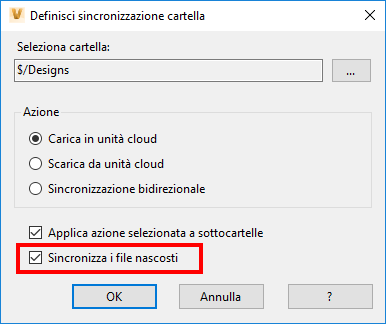 Con questo nuovo aggiornamento, è ora possibile includere file nascosti con sincronizzazioni pianificate in Project Sync. I file DWF generati dal sistema vengono sincronizzati automaticamente con il cloud quando si seleziona questa opzione.