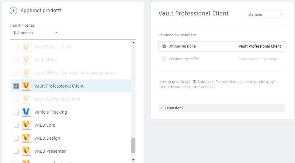 L'installazione di Vault e dei relativi moduli aggiuntivi ora è semplificata mediante Autodesk Account.