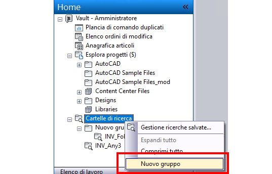 Vault 2021.1 consente ora di raggruppare le ricerche salvate in Vault Client e Inventor.