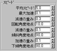 - 平均スピードに掛けて、最大加速を決定します。既定値は 0.1 です。