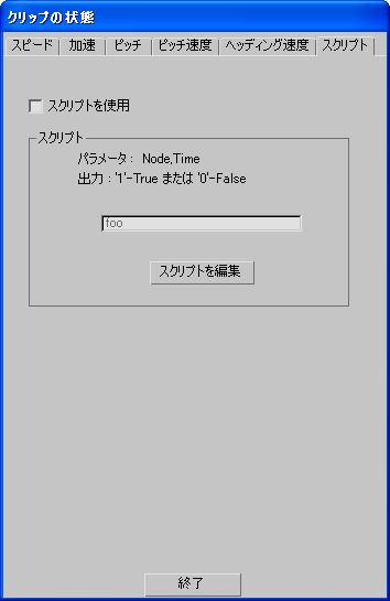 クリップ コントローラで使用されるスクリプトは、特殊な時間に関するステートメントが必要である以外は、認識機能コントローラで使用されるスクリプトと似ています。