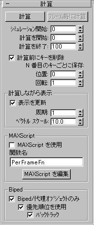 - このチェック ボックスにチェックマークが付いている場合、計算には Biped または代理オブジェクトだけが含まれます。また、優先順位とバックトラックを使用するオプションが使用可能になります。これらのオプションは、Biped のみの計算に対してだけ使用できます。既定値ではチェックマークが付いていません。