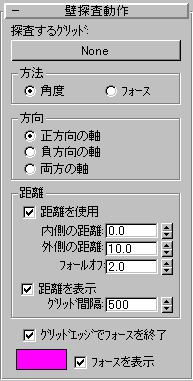 [フォールオフ](Falloff)[内側の距離](Inner Distance)と[外側の距離](Outer Distance)との間で引力が減少するレートです。 既定値は 2.0 です。