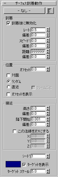 サーフェス到着動作の 3 つの要素、レート、スピード、距離を指定します。