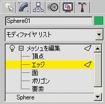 サブオブジェクト レベルでオブジェクトを編集する場合、そのレベルで選択できるのは、頂点、エッジ、ポリゴンなどのコンポーネントだけです。現在選択されているオブジェクトの選択を解除することはできません。また、他のオブジェクトを選択することもできません。サブオブジェクトの編集の途中でオブジェクトレベルの編集に戻るには、モディファイヤ スタックでトップレベルのオブジェクト名をクリックするか、ハイライト表示されているサブオブジェクト レベルをクリックします。