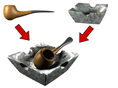 1 つのシーンに合成されたパイプと灰皿のモデル