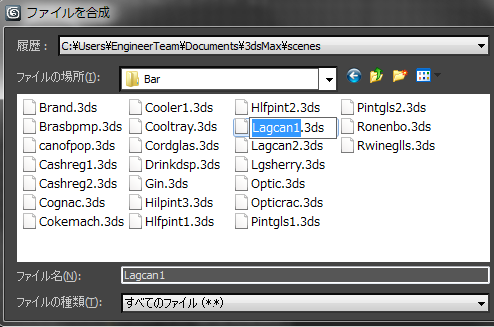 複数の 3ds Max のシーンを組み合わせて 1 つの大きなシーンを作成するには、[合成](Merge)を使用します。ファイルを合成するときに、合成するオブジェクトを選択できます。合成するオブジェクトの名前が、現在のシーンにあるオブジェクトと同じ名前の場合は、名前を変更するか、そのオブジェクトの処理を行わずに次に移ることができます。