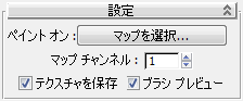 オブジェクトのマテリアル内の、ペイントするマップ タイプを選択します。ボタンをクリックすると、使用可能なマップ タイプのリストが表示されます。