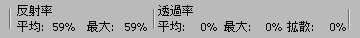これらのフィールドには、アクティブ マテリアルの反射率と透過率が表示されます。表示されるのは平均値と最大値です。