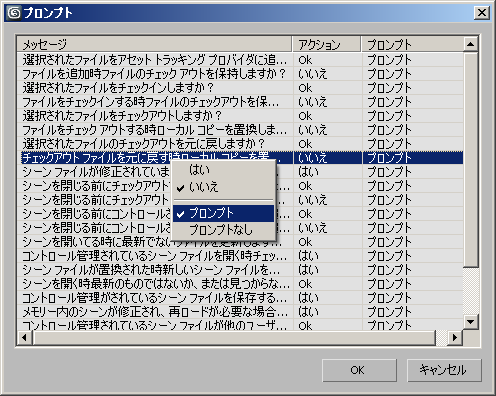 [プロンプト](Prompts)ダイアログ ボックスでは、[アセット トラッキング](Asset Tracking)ダイアログ ボックスからさまざまな機能を実行したときに、返される動作を指定できます。