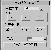 回転の角度を設定します。360 度(既定値)では、サーフェスは完全に軸を囲みます。値を小さくすると、部分的な回転によるサーフェスが生成されます。