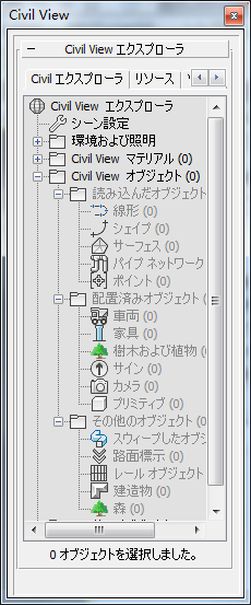 このパネルには、Civil View の内部と外部の両方で作成されたオブジェクトが表示されます。