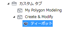 [ポリゴン モデリング](Polygon Modeling)パネル項目のコピーは、[カスタム タブ](My Tab)項目の子として表示されます。リボン上の[カスタム タブ](My Tab)タブをクリックして、コピーを確認します。これで独自のタブを配置できました。