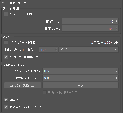 この設定を一度に急に増やさないでください。特に 1.0 に近い値の場合は注意が必要です。値を急に増やすと、不要な計算に長い時間がかかることがあります。また、距離はボクセルの長さで計測されることに注意してください。つまり、ベース ボクセル サイズが小さいほど、任意の速度でパーティクルに対して余分な反復がトリガされる可能性があります。