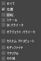 回転と位置のトラックに個別にキーを設定したい場合は、[キー フィルタ](Key Filters)を使用します。