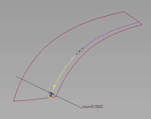 2 つ目のフィットさせたカーブが、専用の最大偏差ロケータおよび矢印マニピュレータとともに表示されます。