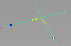 カーブをクリックした箇所に円形のドットが表示されます。これらのドットは、フィレットのサイズまたは開始点/終了点には影響を与えません。これらはフィレットが作成される箇所に四半円を示します。