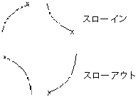 Out Tangent タイプが SLOW の場合、新しいキーフレームの後に続くカーブ セグメントの最初で、動きが遅くなります。