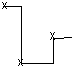 In Tangent タイプが IN/OUT であれば、新しいキーフレームの前のカーブ セグメントが左のようになります。
