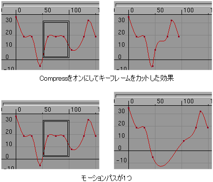 Start Frame にも End Frame にもキーフレームがなければ、これらのフレームにキーフレームが挿入され、Start Frame と End Frame の間のすべてのキーフレームは削除されます。