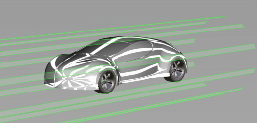 モデルを長いライトの円柱状トンネルで囲んで、モデルにリニア リフレクションを作成します。(ハードウェア シェード環境と同じ機能)