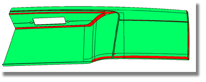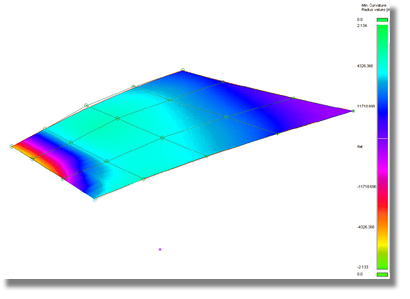 半径が Min.Radius Limit の値を下回るサーフェス領域は 1 色で表示され、Min.Radius Limit の値を上回るサーフェス領域はこれとは別の色で表示されます。