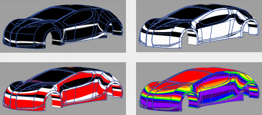 このモードは、サーフェス上のアイソアングルラインを表示し、サーフェス境界の連続性を視覚的に評価するのに便利です。