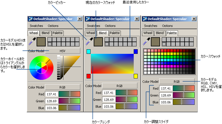 Color Editor には、3 つのタブがあります。