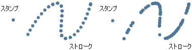 ストロークのスタンプ間の間隔を調整して、間隔を密にしたり、広くしたり、またはその間隔がランダムになるようにしたりできます。