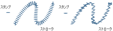 スタンプをストロークの方向に回転させたり、常に同じ方向に留まらせたり、ランダムに回転させたりできます。
