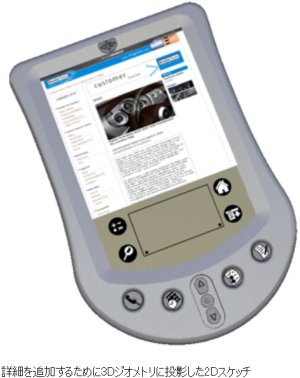 スケッチ投影ワークスローを使用して、初期の 3D コンセプト モデルに詳細を追加します。