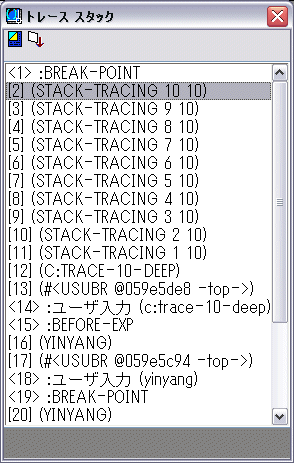 トレース スタックは、プログラムのデバッグ時に使用することができます。