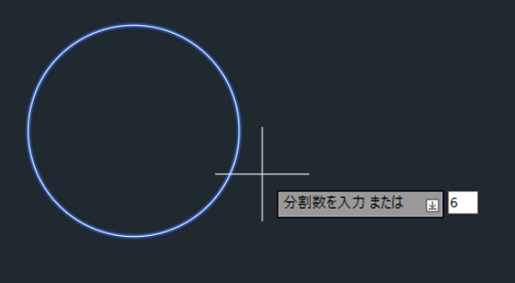 DIVIDE[ディバイダ]コマンドをもう一度使用しますが、今回は円を等分割します。ここでは、円を均等に 6 分割します。