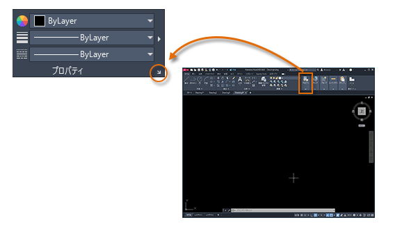 [プロパティ]パレットは図面の編集に必須のツールです。PROPERTIES[オブジェクト プロパティ管理]コマンドを使用する(コマンド ウィンドウに PR と入力する)、[Ctrl] + [1]を押す、または[ホーム]タブの[プロパティ]パネルにある小さな矢印をクリックすることで開くことができます。お好きな方法を使用してください。
